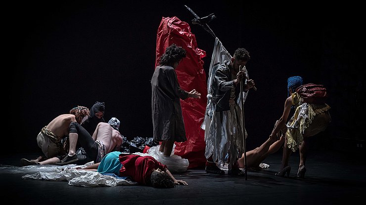 Les neuf danseurs brésiliens de Fúria n’ont rien et ils sont tout : princes drapés de haillons, princesses d’un royaume bâti à coups de matériaux de récup’. Jamais accablés, toujours lucides, ils présentent un corps collectif pétri des maux de leur pays. Leur communauté mutante se recompose sans cesse au fil de processions lentes comme un cortège royal, de duos de maîtres et d’esclaves, de sculptures vivantes et de figures hurlantes.