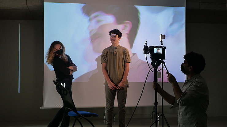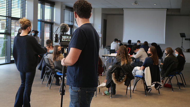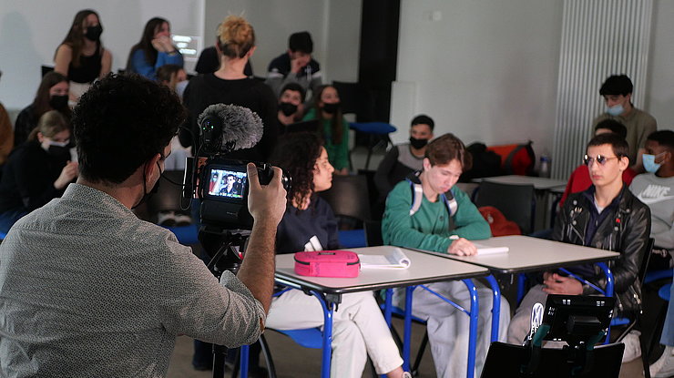 Dès le mois de novembre 2021, les élèves ont rencontré les artistes Camille Panonacle (comédienne) et Jonathan Michel (metteur en scène et vidéaste), codirecteurs de la compagnie Contrechamp, à l’occasion de la résidence de création du spectacle La Terre tremble, que les élèves découvriront plus tard dans la saison.