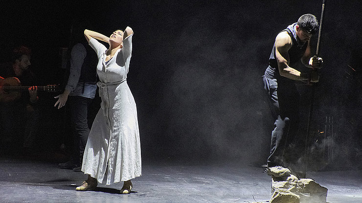Par le chant, la danse et le théâtre, Burdina, hierro, la saga du fer offre une plongée poétique dans l’intimité des familles andalouses qui, poussées par la misère, rejoignaient les mines de fer de Biscaye pour extraire « l’or rouge » incrusté dans les veines des montagnes de Triano, de Bilbao jusqu’à l’océan.