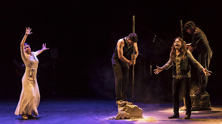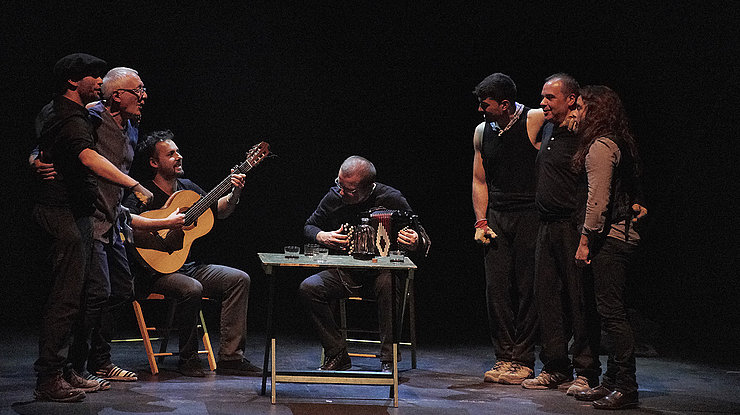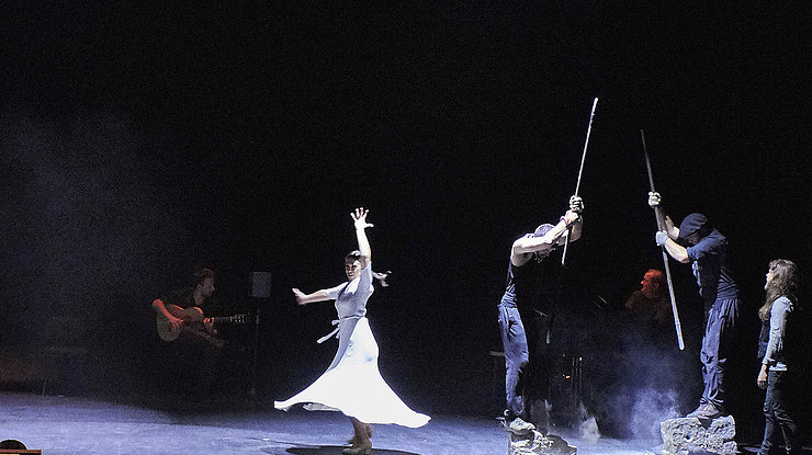 Adriana Bilbao dantzariak deliberamendu horren adibide argia da. Bere flamenkoak hegan egiten du Beñat Achiary-ren eta Raúl Micó-ren euskal eta andaluziar kantuekin batera, Guillermo Guillén eta Michel Queuille-ren musiken gainean eta burdin-haga eskuetan duten hiru harrizilatzaileren erritmora, hauek arbasoen memorioa irudikatzen dutelarik.