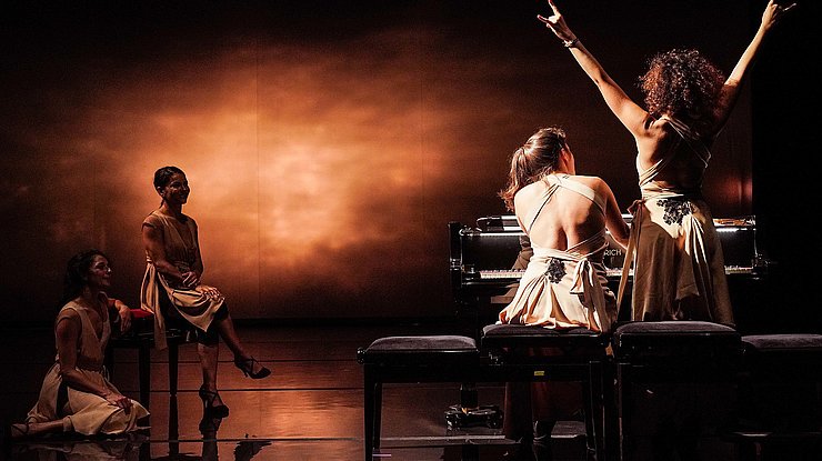 Concert chorégraphique pour quatre femmes artistes, deux pianistes et deux danseuses, Muses est une ode à la féminité. Une rencontre audacieuse entre piano classique et danse hip-hop.