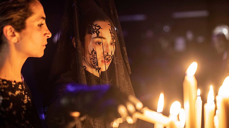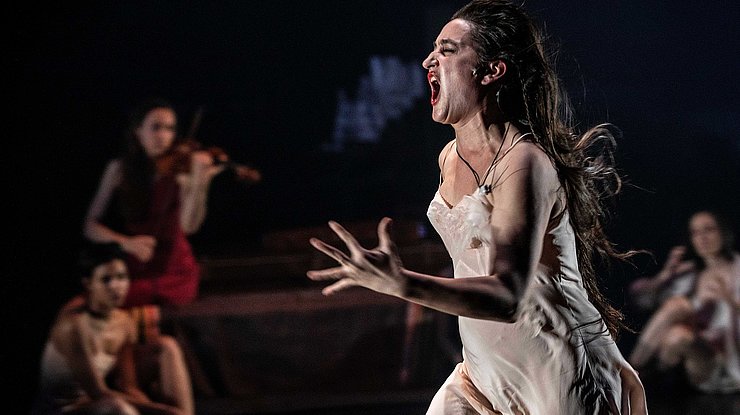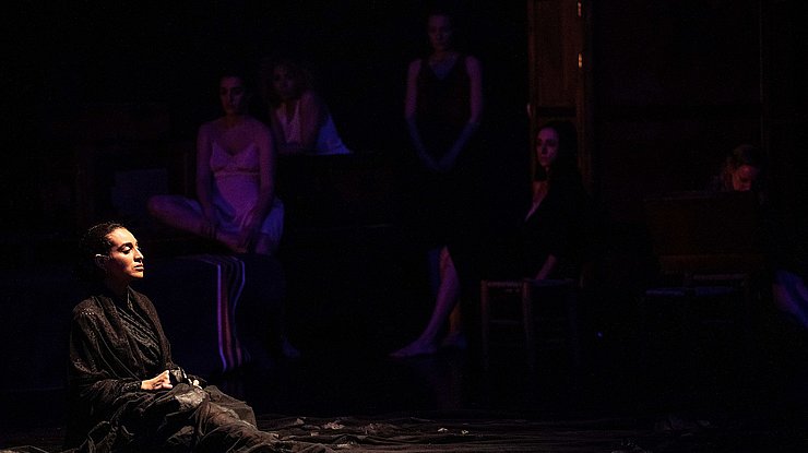 De : Federico Garcia Lorca — Mise en scène, adaptation, traduction : Daniel San Pedro — Composition, direction musicale : Pascal Sangla — Avec Aymeline Alix, Donia Berriri, Audrey Bonnet, Camélia Jordana, Estelle Meyer, Johanna Nizard chant et interprétation, Liv Heym violon, Pascal Sangla piano, M’hamed El Menjra guitare, percussions, contrebasse — Assistant à la mise en scène : Guillaume Ravoire — Scénographie : Aurélie Maestre — Assistante scénographie : Clara Cohen — Costumes : Caroline de Vivaise — Assistante costume : Magdalena Calloc’h — Lumières : Alban Sauvé — Création sonore : Jean-Luc Ristord — Chorégraphie : Ruben Molina — Maquillage, coiffure : David Carvalho Nunes