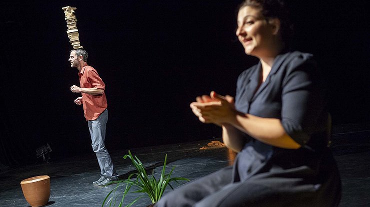 Un conseil : ne vous fiez pas au titre explosif, qui pourrait laisser entendre que Rémi Luchez s’envoie en l’air comme un boulet ! Si cet homme est canon, c’est par la délicatesse de ses fragiles équilibres. Qu’il se lance dans un empilement de briques au-dessus de son crâne ou dans un exercice d’escalade, son art allie grande simplicité et grande difficulté. Une chanteuse et musicienne, Lola Calvet, complète cet irrésistible assemblage absurde, passant d’une ballade irlandaise à un tube de Britney Spears.