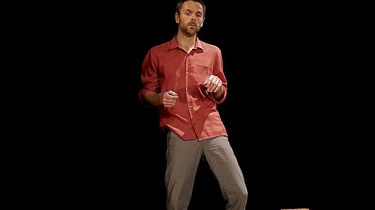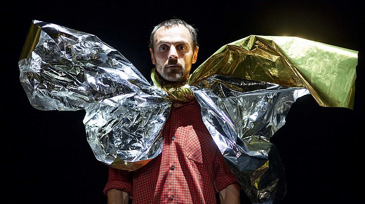 Sur scène, sa frêle silhouette de clown concentré à l’extrême, faussement ahuri, s’obstine et s’évertue à accomplir, parfois même à saboter, des actions absurdement périlleuses, dans une scénographie simple aux détails loufoques. Lauréat du Prix Jeunes Talents Cirque Europe avec le spectacle Miettes en 2009, ce funambule virtuose tend un fil entre les plus improbables émotions, balançant entre poésie, jubilation et frisson.