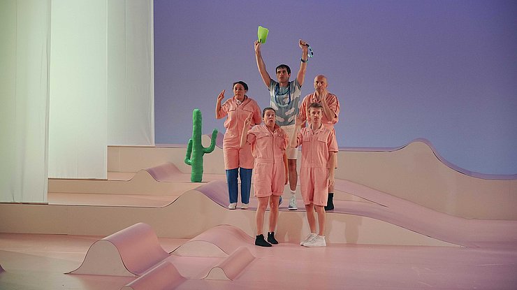 D’après : Candide ou l’Optimiste de Voltaire / Adaptation théâtrale : Julien Duval, Carlos Martins / Mise en scène : Julien Duval / Avec : Zoé Gauchet, Vanessa Koutseff, Félix Lefebvre, Odille Lauria, Franck Manzoni, Carlos Martins, Thierry Otin / Scénographie : Olivier Thomas / Lumières : Anna Tubiana / Costumes : Aude Désigaux / Composition musicale : Kat May / Création sonore : Madame Miniature / Assistanat à la mise en scène : Julia Roger (stagiaire) / Création : 9 novembre 2021, TnBA, Bordeaux