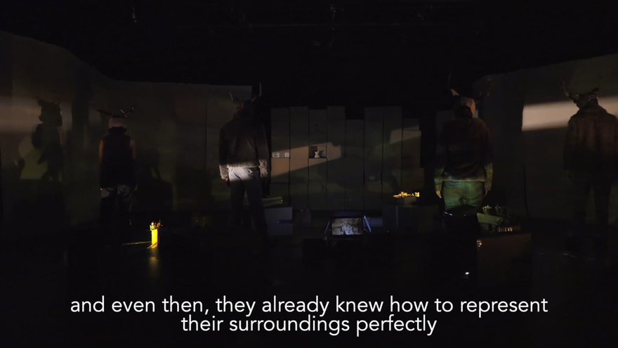 C’est ainsi : ce sont souvent de jeunes gens qui découvrent les grottes. C’est ce qui arrive le 8 septembre 1940 du côté de Montignac à un adolescent de 18 ans, Marcel Ravidat, après que son chien Robot a fouillé une cavité au beau milieu du Périgord noir. Quatre jours après, bien équipés, Georges, Simon, Jacques et notre Marcel, toujours avec son chien, descendent dans cet étroit boyau (avec quelques bleus au passage). Leurs torches éclairent des scènes fabuleuses, composées de multiples animaux… C’est la découverte de la grotte de Lascaux, partagée quelques jours après avec leur instituteur. Au jeune spectateur à son tour, dans cette histoire contée par la voix de l’artiste, d’accompagner quatre performeur.se.s qui, avec des téléphones portables en guise d’éclairage, révèlent ce bestiaire préhistorique. Revoir Lascaux invite à partager cet émerveillement entre techno-chamanisme et ombres d’animaux en plastique projetées en grand format pour révéler ce mystère quasi originel.