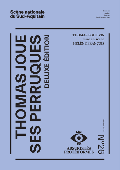 Texte : Thomas Poitevin, Hélène François, Stéphane Foenkinos, Yannick Barbe / Mise en scène : Hélène François / Interprétation : Thomas Poitevin / Équipe de création : Thibault Marfisi, Guillaume Duguet, Bastien Courthieu / Avec les voix de : Thomas Poitevin, Micky Sébastian