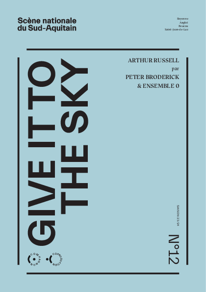 Figure emblématique pour de nombreux musiciens, Arthur Russell devient la matière du nouveau spectacle de l’ensemble 0 ! Give it to the Sky croise parité sur scène, la scénographie et les lumières de Caty Olive, la dramarturgie de Christian Rizzo, la voix de Peter Broderick et les morceaux du compositeur à partir d’une collaboration ratée avec Robert Wilson. Un univers fascinant.