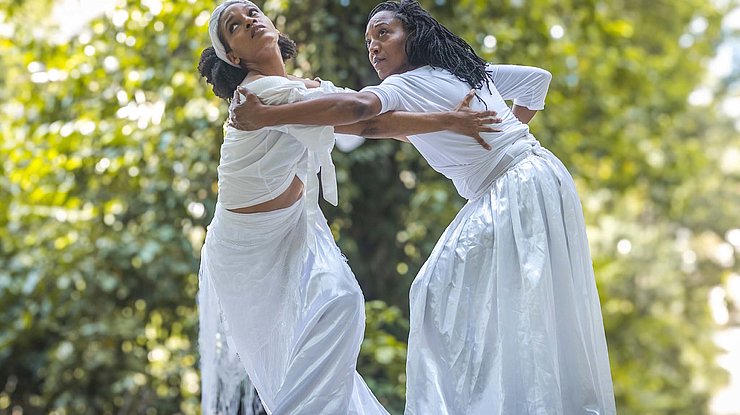 Texte, mise en scène : Gaëlle Bien-Aimé / Avec : Gaëlle Bien-Aimé, Charline Jean Gilles, Amandine Saint Martin / Scénographie : Nathania Périclès / Création sonore : David Duverseau / Création Lumière : Alix Olivier / Diffusion : Soraya Jasmin / Crédits Illustration : Pye Lila / Crédits Photos : Gaelle Bien-Aimé - Avren Les comédiennes / Photos : David Duverseau / Création : Septembre 2024 au Théâtre de l'Union dans le cadre des Zébrures d'automne