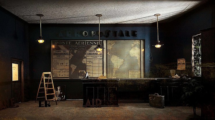 Remerciements : <« Je remercie infiniment toute mon équipe de m’avoir suivie, accompagnée et de s’être engagée dans cette création ainsi que mes fidèles et nouveaux partenaires et coproducteurs, sans qui ces créations ne verraient pas le jour. Je remercie tout particulièrement Olivier d’Agay, Jean-Louis Cigliana, Pierre-Elzear Latécoère, Pierre Léna, Thibault de Montalembert, Catherine Thévenet. Je remercie pour leur accompagnement et soutien Atomic Location, Sylvie Bergès et toute l’équipe du musée de l’hydraviation de Biscarrosse ; Frédéric Collinot - Cercle des Machines Volantes (Compiègne), Pierre Courtois de Viçose, Christelle Demontrond, Pascal Dugeay - France Aéro Limoges, Franck Fertille - Gallimard, Joël Gauthier - bouquiniste, Martine Laporte, Monsieur et Madame Le Liepvre, Didier Malfetes, Laurent Maumelat, Frédéric Piat, Damien Saint-Martin de la FASEJ, Martine Saint-Martin ; Le CAEA (Conservatoire de l’Air et de l’Espace d’Aquitaine) Jean-Marc Dall’Aglio, Philippe Moretti, Michel Pellefigues, Marcel Soulette ; IFI Institut de Formation Industrielle - Mérignac avec William Dubos, Stéphane Ferus, Olivier Guillet, Alexandra Salvini, Patrice Soulard. « Directed by films » et Léna d’Azy remercient Claude Baudin, le conservatoire du littoral, Pierre Desgranges, la Mairie de Palmyre, la Mairie de Saint-Palais-sur-Mer, la Tremblade, West motion »