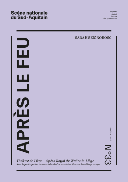En collaboration avec l'Opéra Royal de Wallonie-Liège et la Maîtrise du conservatoire Maurice Ravel Pays basque, Sarah Seignobosc livre avec Après le feu un conte écologique et musical qui met la jeunesse au centre de l’action.